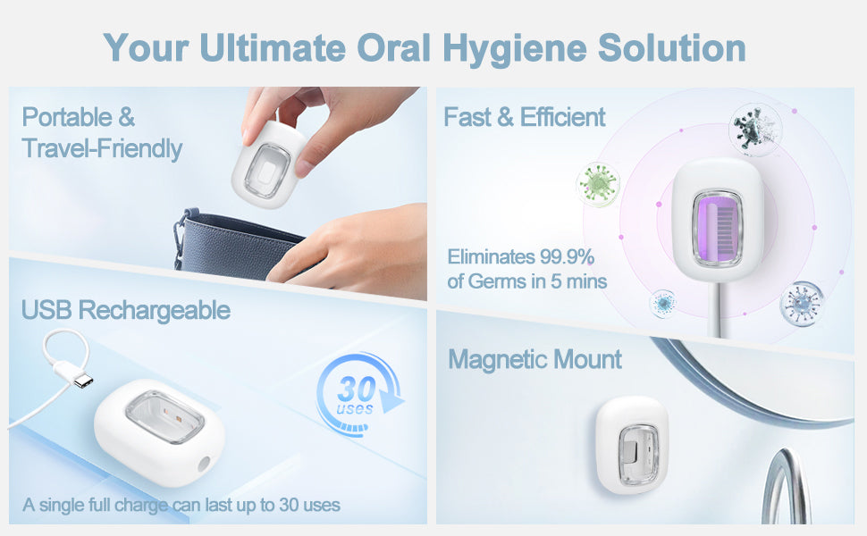 UV-C Toothbrush Sanitizer Cap - Rechargeable Travel Cover with Magnetic Wall Mount