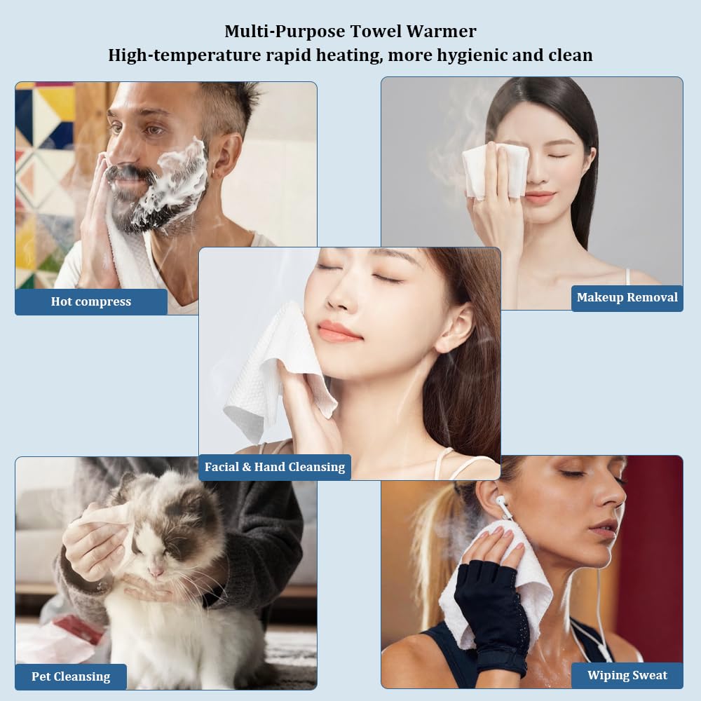 Spa-quality warm towels in just 5 seconds with automatic heating and dispensing—perfect for facial care, massage, or post-workout refreshment.