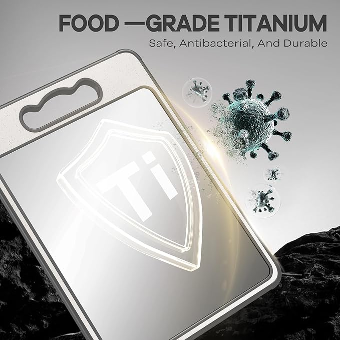 The cutting surface is reinforced with a titanium composite layer that resists knife marks, stains, and bacterial growth for long-lasting hygiene.