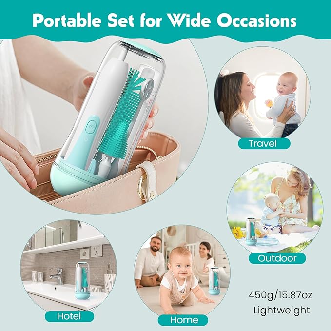Electric Bottle Brush Cleaner Set – 8-in-1 USB Rechargeable Baby Bottle Cleaning Kit