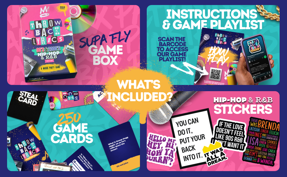 Relive the golden era of music! This nostalgic card game takes you back to the peak of 90s and 2000s hip-hop & R&B with iconic lyrics, fun challenges, and competitive gameplay—perfect for parties, family gatherings, or music lovers.